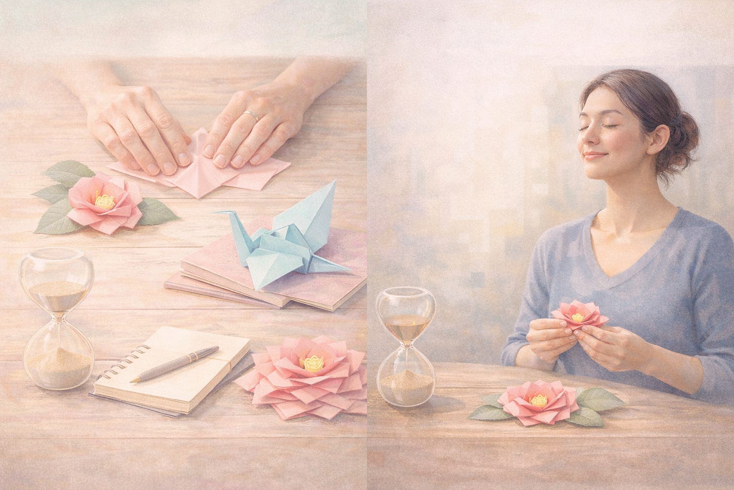 Modern adults live in a default state of fragmentation—notifications, constant task-switching, and a mind that rarely settles. Origami Meditation does not ask people to “try harder” to be calm. Instead, it combines simple step-by-step folding with brief pauses and slow-breath cues, intentionally limiting how many places attention can scatter.