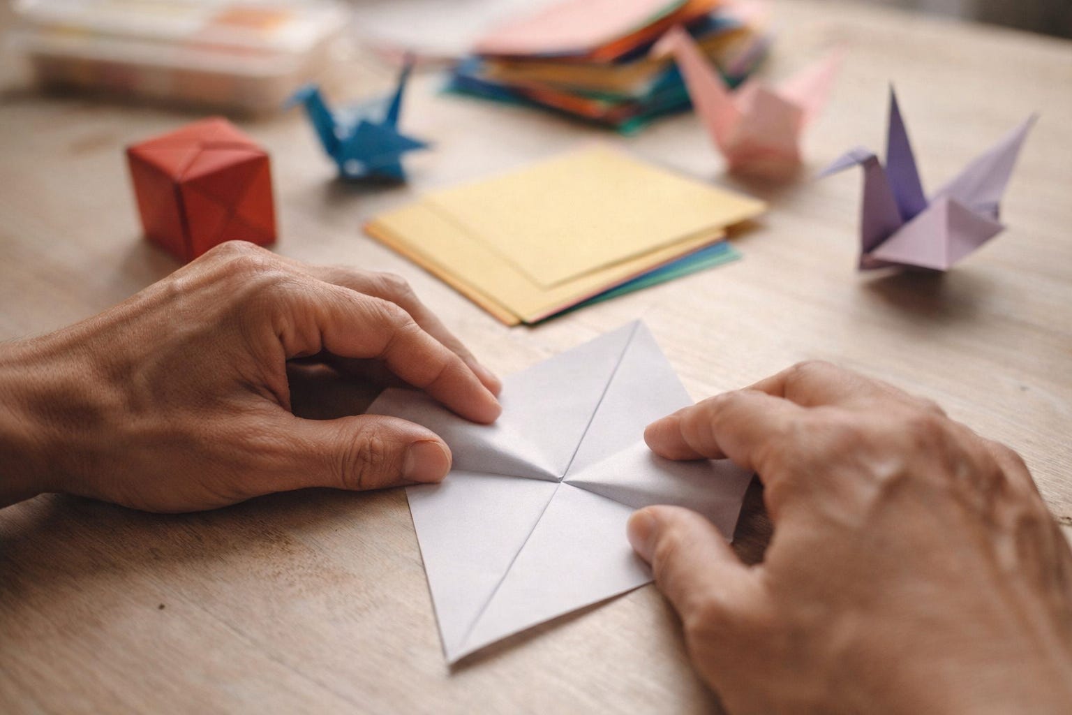 Origami forces a relationship with pacing. Rushing produces misalignment; misalignment destabilizes what comes next; then the urge to restart appears. Folding quietly asks: